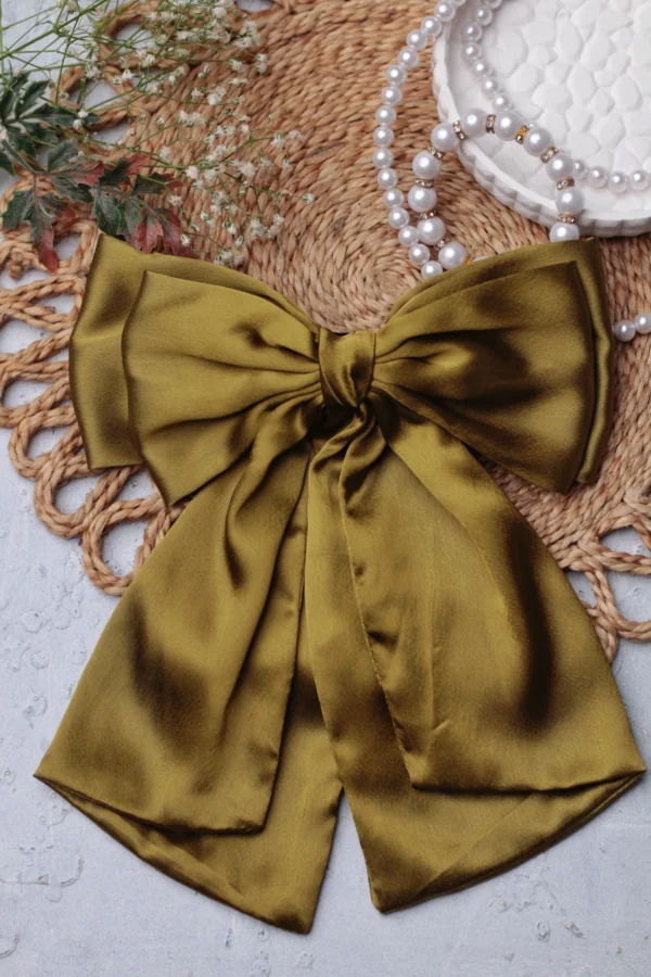 Layered Long Bow – Premium Satin Fabric and French barrettes clips