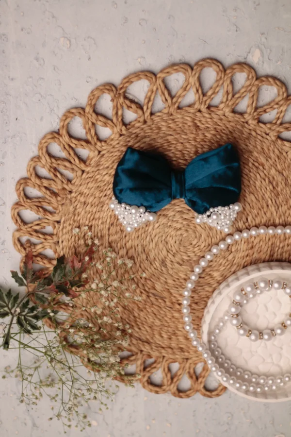 Pearl Bow- Satin fabric , Right sided alligator hair clip