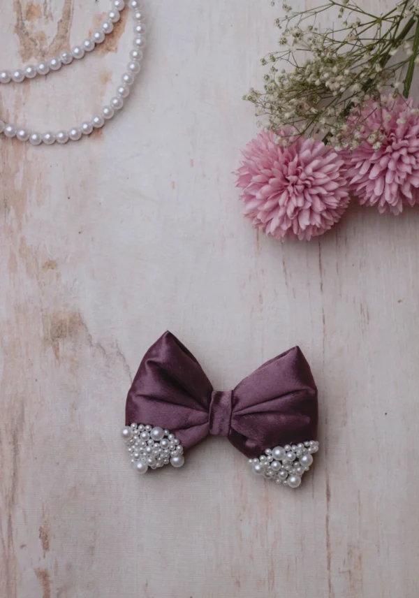 Pearl Bow- Satin fabric , Right sided alligator hair clip