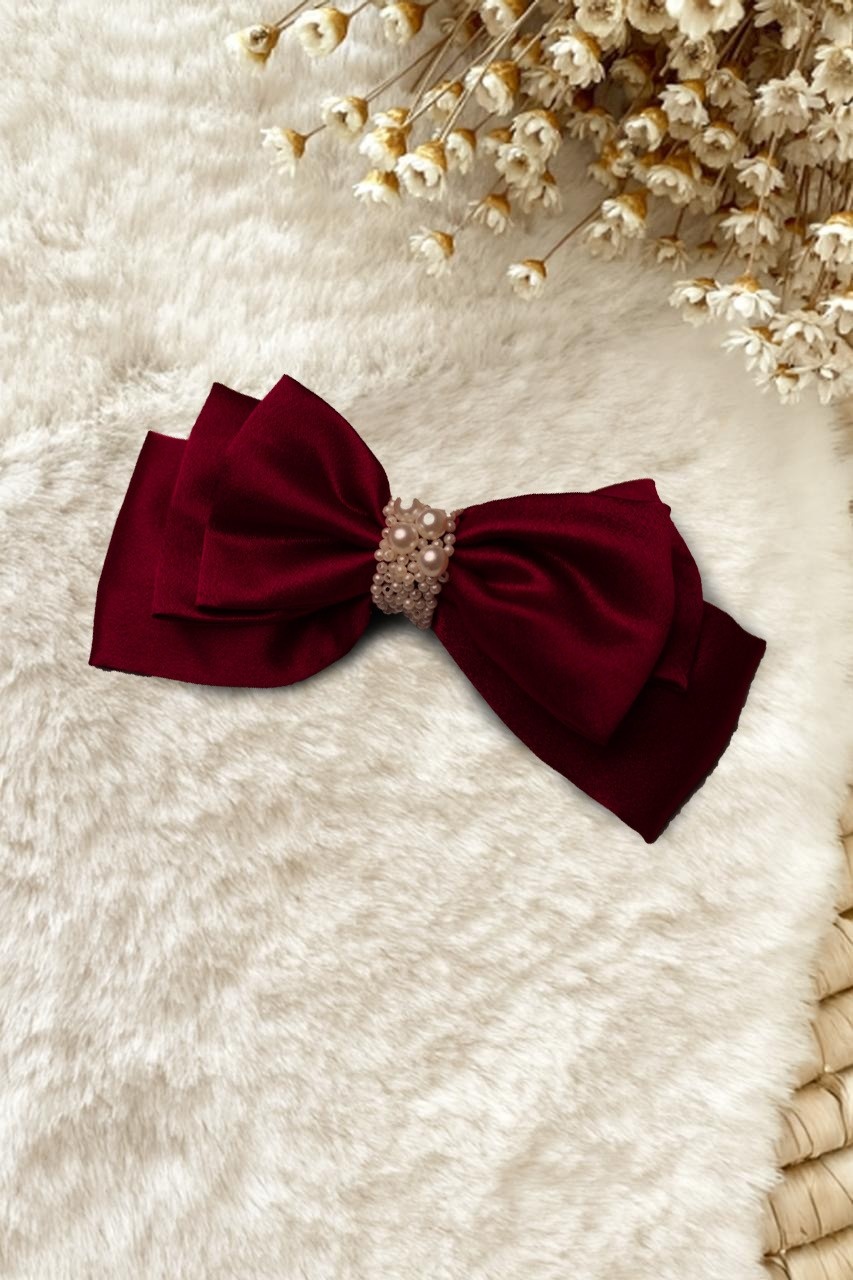 Layered Bows with pearl , French Barrettes clips